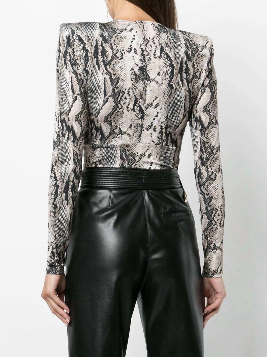 Featuring stretch-design, python print, twist detailing, V-neck and long sleeves.
